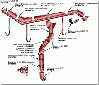 1. Водосточная система «Экласс» (диаметр желоба – от 100 до 200 миллиметров,